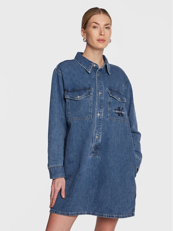 Calvin Klein Jeans Vestito di jeans J20J220240 Blu Relaxed Fit • Alla moda Vestiti di jeans dei top brand #MODIVOFASHION • Consegna gratuita e reso fino a 100 giorni • MODIVO.IT negozio online