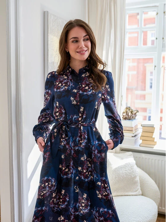 Kaffe Vestito chemisier Ninna 10507089 Blu scuro A-Line Fit • Alla moda Vestiti camicia e chemisier dei top brand #MODIVOFASHION • Consegna gratuita e reso fino a 100 giorni • MODIVO.IT negozio online